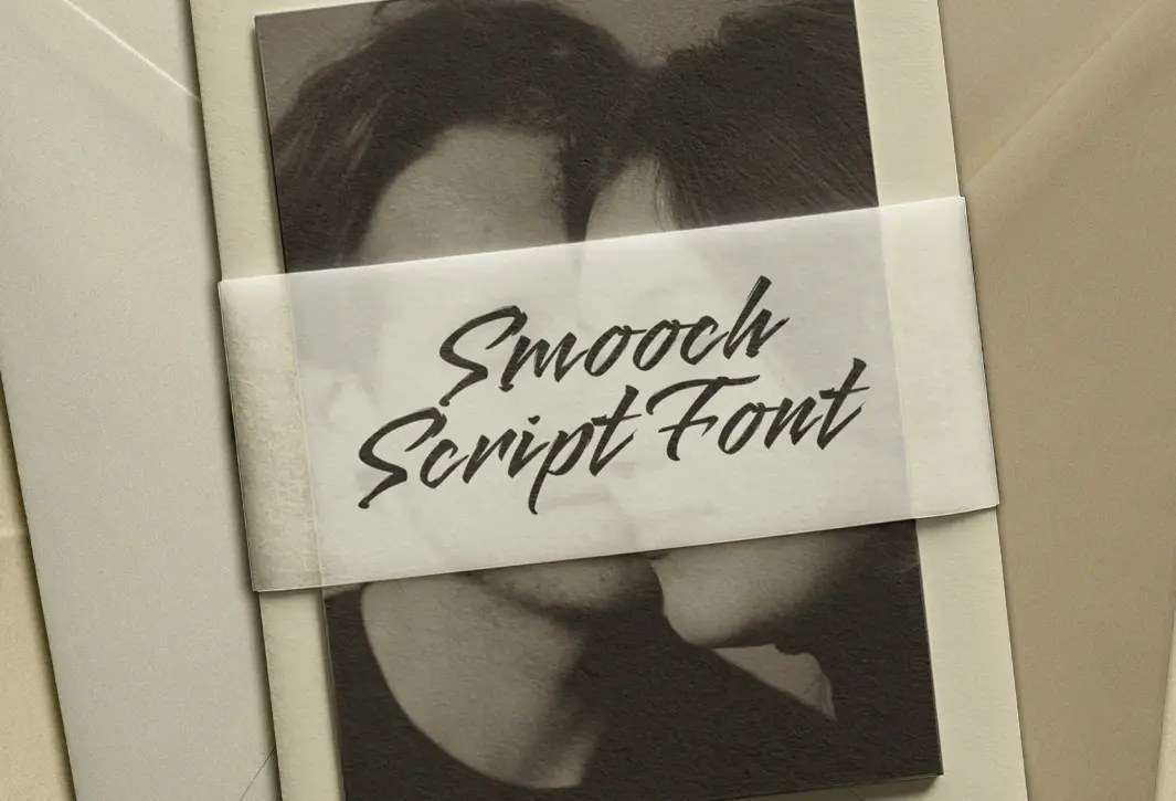 Smooch swirls in glossy, lipstick-like strokes that recall handwritten love notes, vintage cosmetics ads, and Valentine card lettering. This rounded brush font with soft joins and romantic rhythm is excellent for wedding stationery, greeting cards, fashion branding, packaging accents, party invitations, beauty branding, cupcake-and-coffee packaging, boutique logos, and quote-led social media graphics.