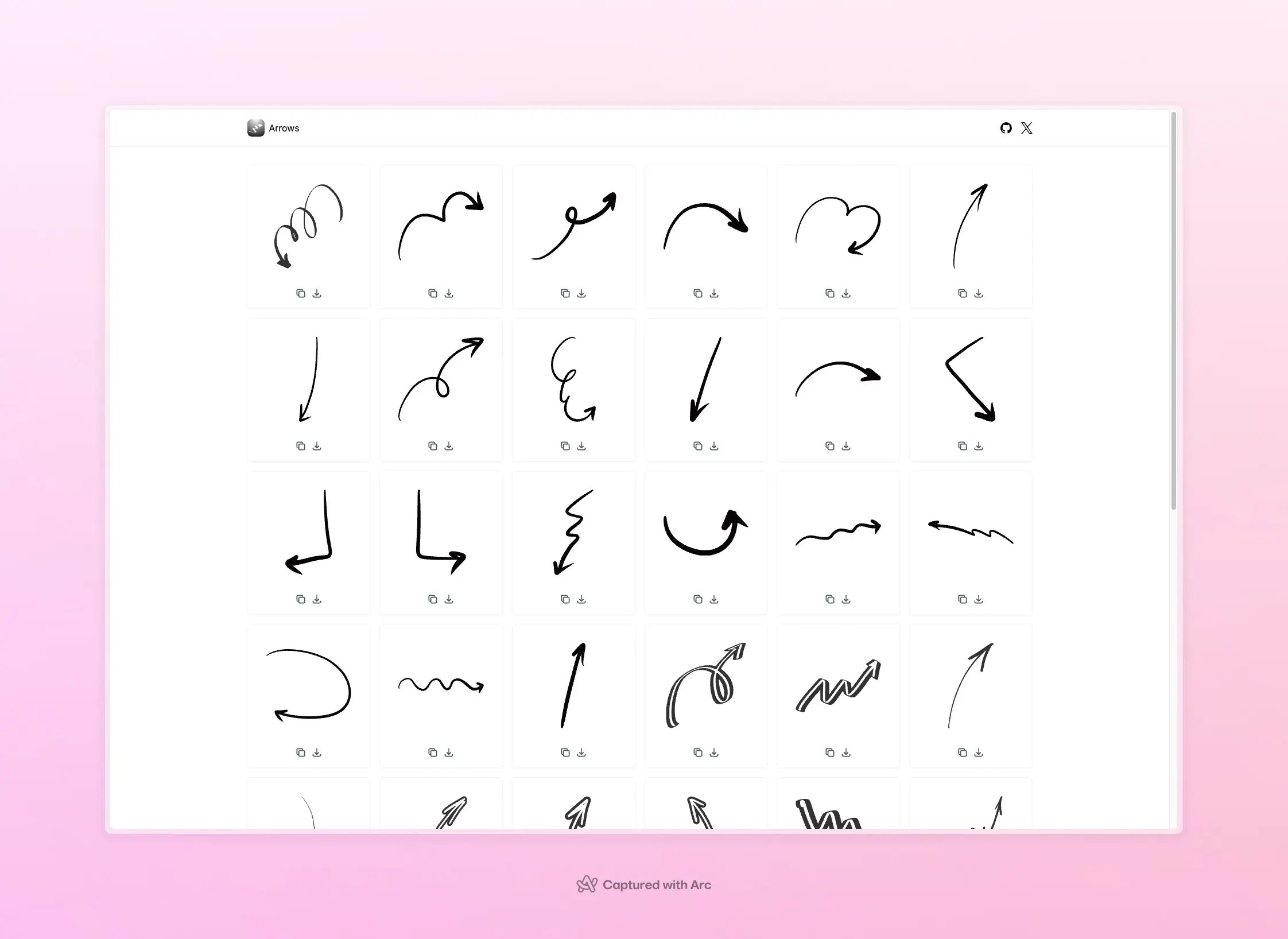 A customizable gallery of hand-drawn arrow SVGs that can be easily copied as SVG code or React components for use in your projects.