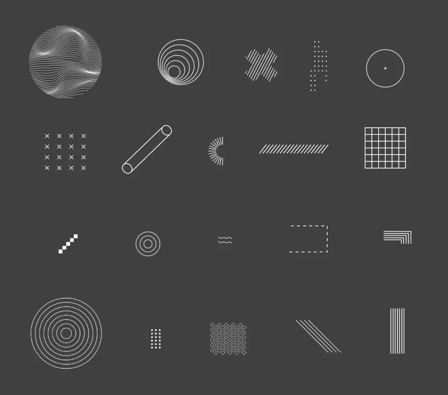 A set of 100+ abstract shapes and elements free for your design explorations or personal projects.
