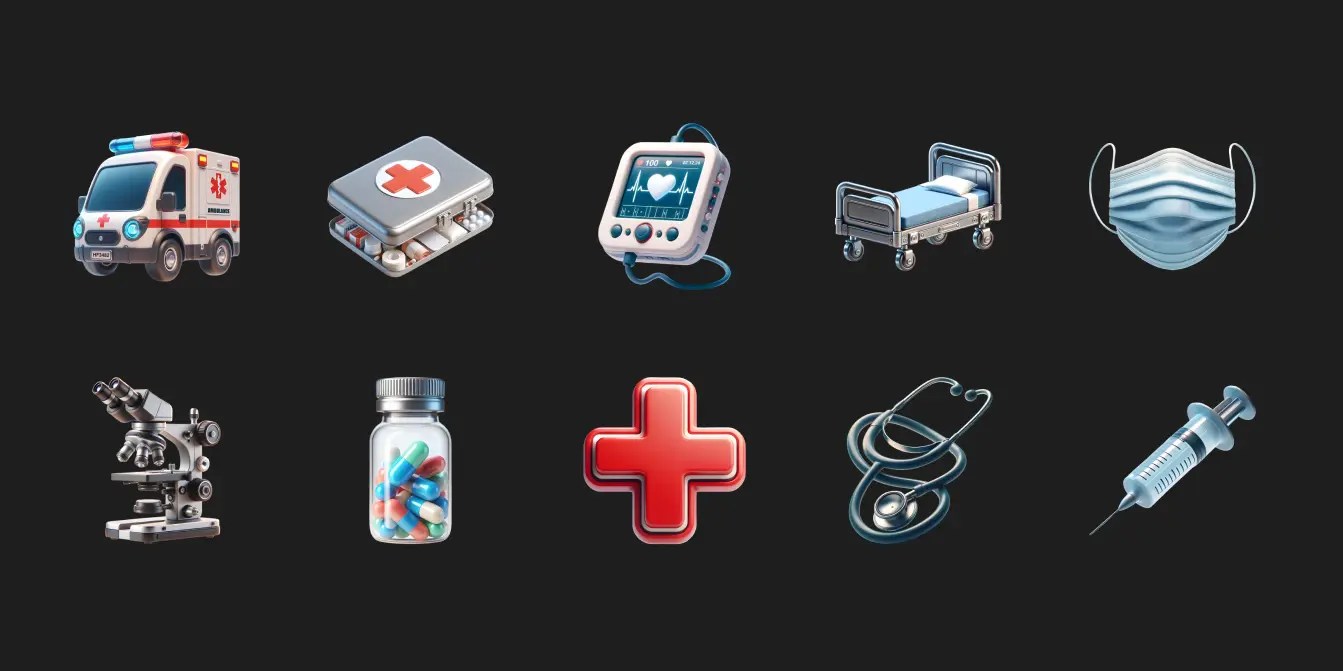 A set of 10 medical 3D icons perfect for sprucing up your healthcare apps, websites, or presentations.