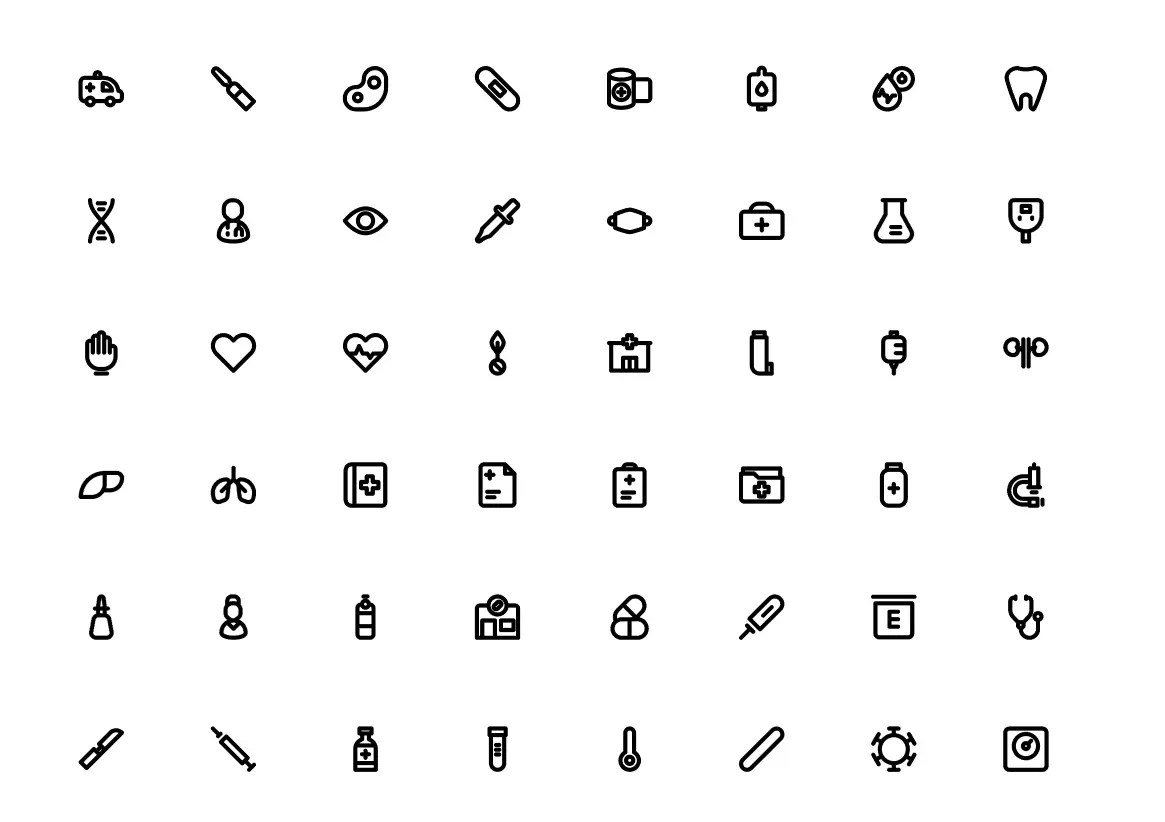 A collection of 98 well-crafted icons in 4 styles: linear, solid, duotone, and two-colour. These icons are perfect for any healthcare-related user interface.