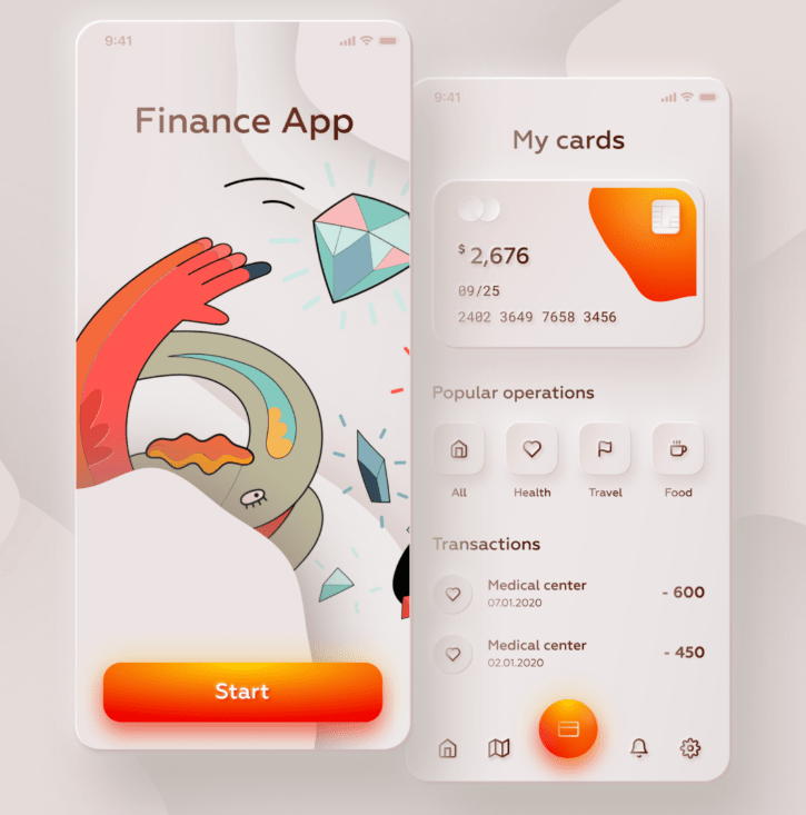 A pretty nice Finance App UI kit following the Neumorphism specification.